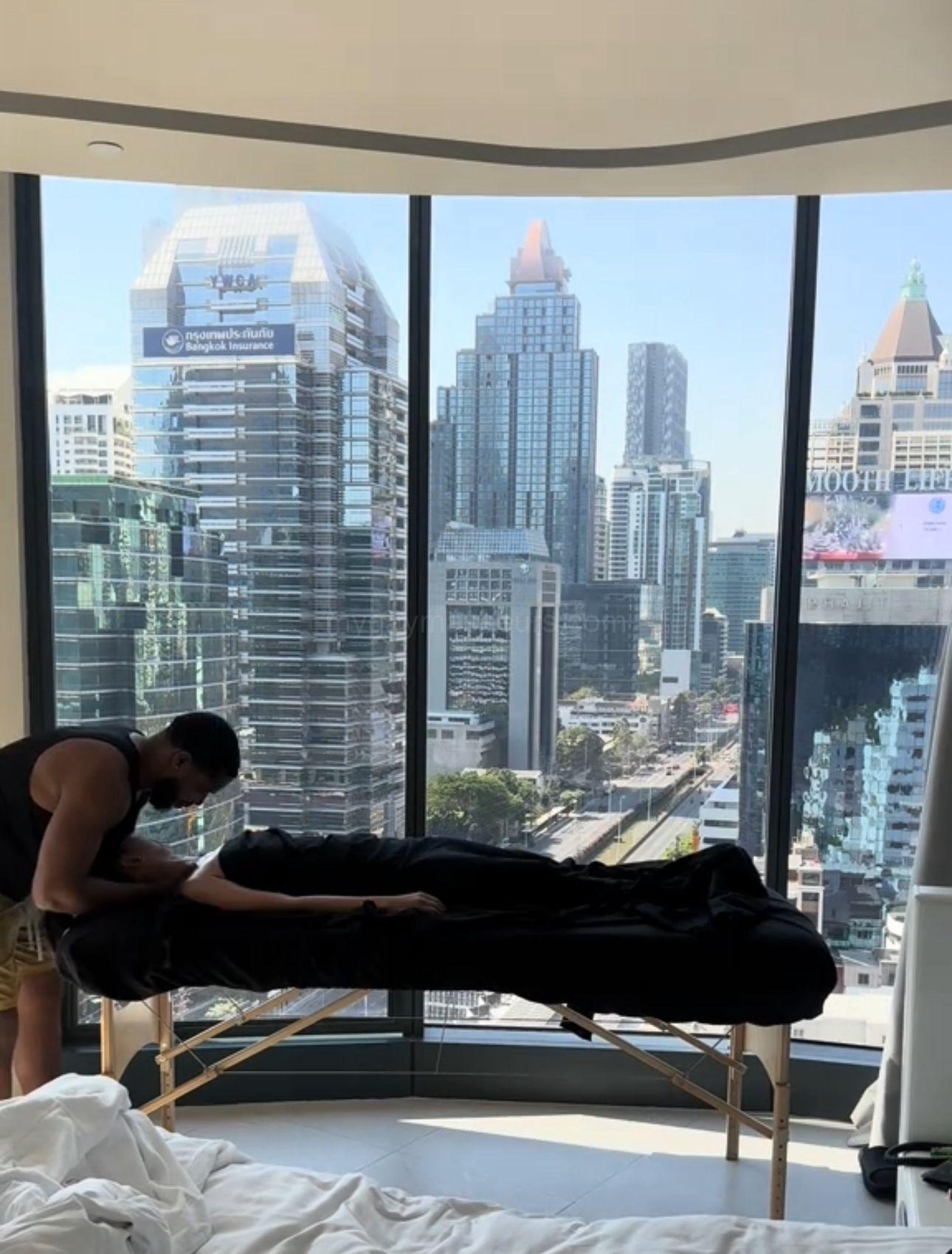 Le massage ferme comme il faut, enveloppant et réconfortant. Puis il évolue vers quelque chose de plus sensuel…