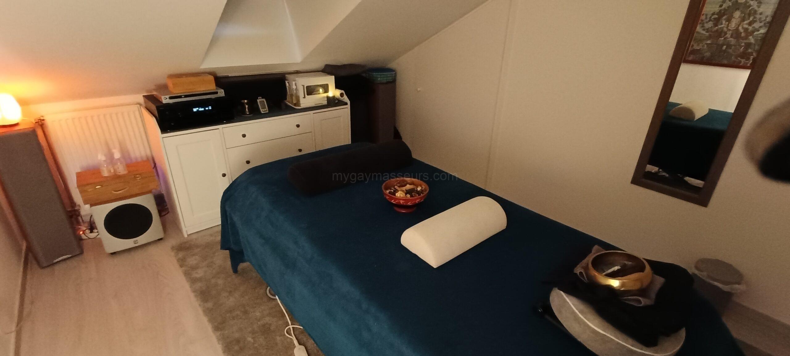 Je pratique le massage à l’aide d’une huile biologique inodore, sur une table chauffante spacieuse équipée d’un matelas à mémoire de forme offrant un confort optimal.
