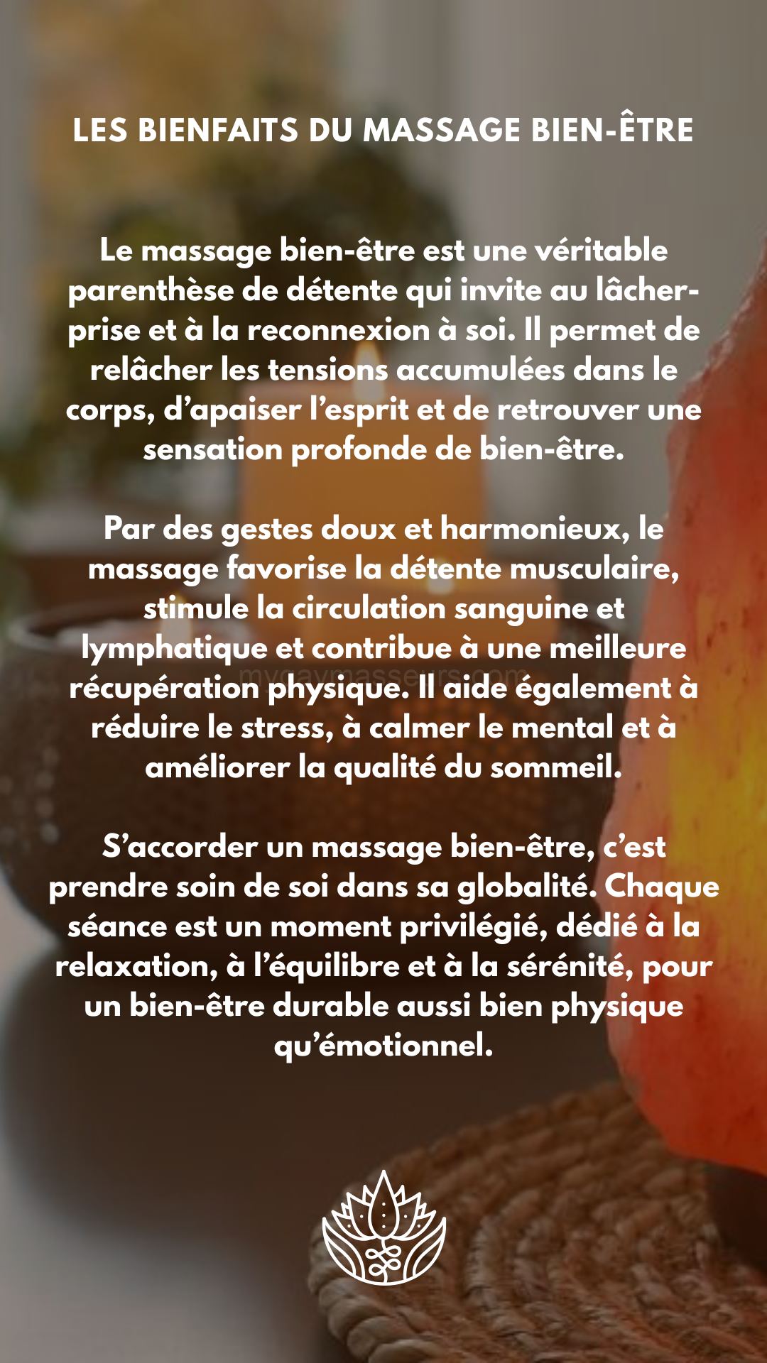 Je propose des massages personnalisés, adaptés à vos envies, pour vous aider à lâcher prise et à retrouver un profond bien-être.
